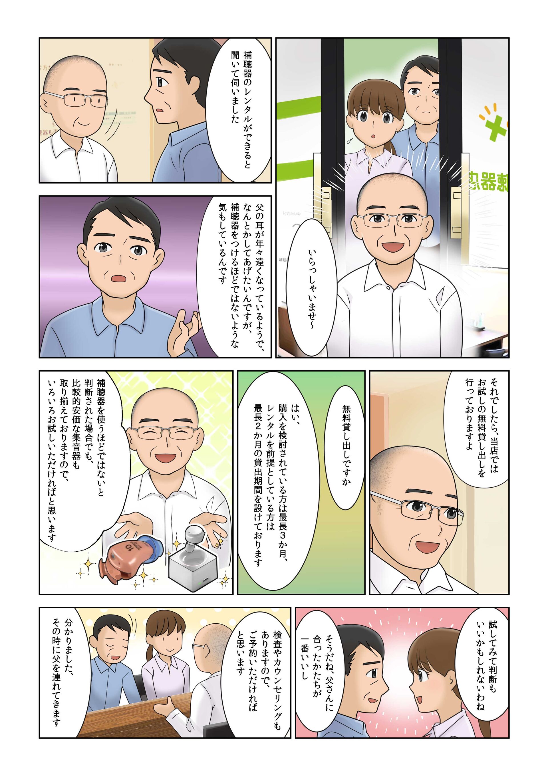 補聴器が耳に合っているのか、聞こえがよくなったのか、自分で使えるのかなど体験して満足してから購入していただいております。